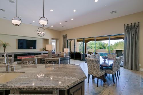 Your Sonoran Desert sanctuary awaits! Turnkey & fully furnished, this modern southwest-style custom home boasts incredible finishes throughout. The Entertainer's Dream kitchen features a large island & ample storage. The spacious 4-bed home, plus a den/office, offers 4.5 baths & an open GREAT ROOM design. With 12' ceilings, the space is light & bright, featuring a popular split-bedroom layout. All bedrooms are ensuite! The resort-style backyard oasis includes a heated pool & firepit. Enjoy the spacious 3-car garage with built-ins & epoxy floors, a paver driveway, and easy desert landscaping. Nestled in a private cul-de-sac, the park-like setting offers mountain & sunset views. Quality appointments throughout & close to hiking, golf, & the dining options of N Scotts, Carefree & Cave Creek!