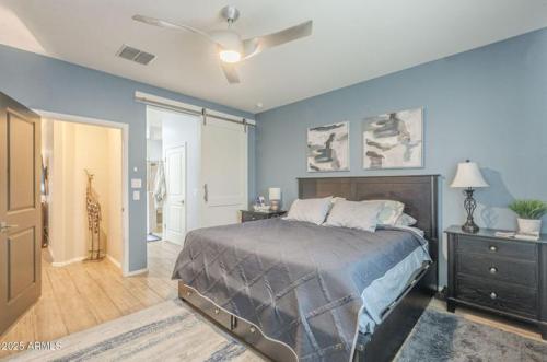 HUGE LOT - AMAZING PRICE!! Welcome to the ever-popular Presley model, boasting beautiful curb appeal and ideally situated next to a greenbelt for added privacy and charm. Step through the inviting foyer into a versatile flex room—perfect for a guest suite, workout space, or additional sitting area. This unique floor plan also features a convenient office nook with a built-in desk, ideal for remote work or study. The open family room and remodeled kitchen blend warmth and style with sleek quartz countertops, 42' cabinets and designer finishes. Retreat to the primary suite with its oversized walk-in shower, custom closet, and blackout shades for ultimate comfort. Enjoy a coated driveway, epoxy garage floors, updated lighting and ceiling fans, along with fresh interior and exterior paint. oversized, low-maintenance backyard is an entertainer's dream with a built-in BBQ kitchen, perfect for hosting gatherings year-round. This Presley model offers the perfect mix of function, upgrades, and lifestyle don't miss your chance to call it home!