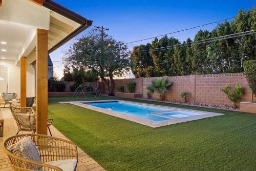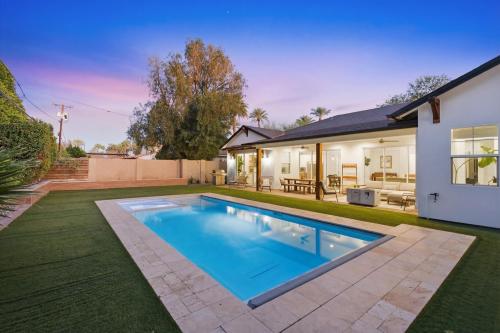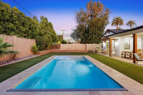 Rare opportunity to own a newer single-level home in the heart of Arcadia Lite's coveted 85018 within the Hopi Elementary district. Built in 2018, this modern custom offers 2,801 sq ft with 4 bedrooms, 3 baths, and a private den. High ceilings and three oversized sliding glass doors create seamless indoor-outdoor living filled with natural light. The kitchen features vented gas cooking, an oversized island, and walk-in pantry opening to the great room. The backyard features a heated pool and spa with electric cover, turf yard, patio cover, and ideal north/south exposure. Walk to Kachina Park, LGO, and Postino with canal paths nearby for miles of running or biking. Minutes to Camelback Mountain, the Biltmore, Sky Harbor Airport, and near the Phoenix Suns training facility.