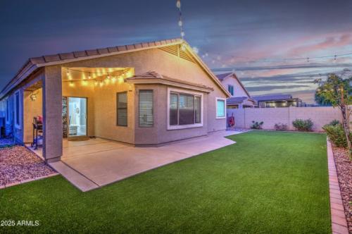 TURN-KEY- pack your bags and move in! You won't want to miss this absolutely stunning, model-perfect home! NEW ROOF! Enjoy the community amenities - pool, GOLF, parks! In addition to the gorgeous indoor features, sellers added the air-conditioned outdoor office space of 96 sq ft. Need another bedroom or craft room? Synthetic front and back yard! No excess water bill. Extended island in your spacious chef's kitchen w/ soft-closed deep cabinetry. Upgrades galore with quartz countertops, backsplash, & all appliances, including fridge and a top-of-the-line washer and dryer, upgraded flooring throughout- no carpet. A list of home features welcomes your review. Nothing to do here but enjoy your new home! The driveway has been professionally cleaned 11/25