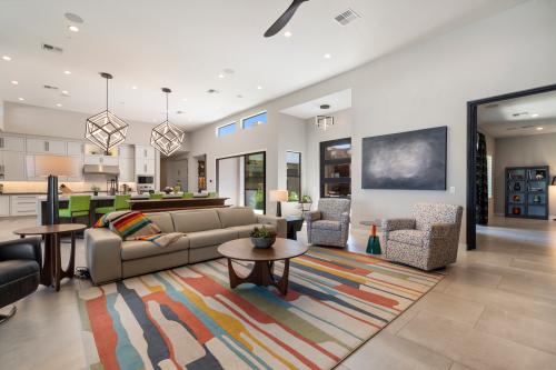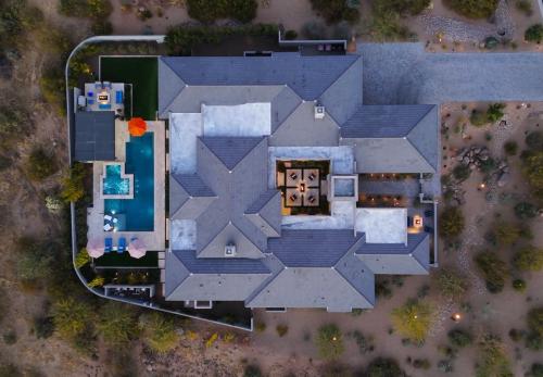 This North Scottsdale residence at Boulder Ranch embodies modern elegance and luxury with the serenity and peacefulness of the Sonoran Desert. A private courtyard welcomes you to an expansive interior with soaring ceilings, custom hardwood shelving. The floor-to-ceiling doors and windows invite in an abundance of natural light. The heart of the home is a chef's kitchen, equipped with waterfall-edge islands, quartz countertops, and high-end appliances, seamlessly blending into the living and dining areas. The primary suite is a private haven with dual walk-in closets, backyard access, and a spa-inspired bathroom featuring a soaking tub, rain shower, and luxury finishes. Additional guest suites and a versatile 1 Bedroom Casita provide ample accommodations for multi-generational living. Outdoor living is elevated with a pool, spa, outdoor kitchen, and heated patios with power shades, creating perfect In-Door, Outdoor Living. The property includes a climate-controlled five-car garage and a Control4 automation system, epitomizing convenience and sophistication. A Truly Breath Taking Residence!!