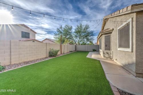 TURN-KEY- pack your bags and move in! You won't want to miss this absolutely stunning, model-perfect home! NEW ROOF! Enjoy the community amenities - pool, GOLF, parks! In addition to the gorgeous indoor features, sellers added the air-conditioned outdoor office space of 96 sq ft. Need another bedroom or craft room? Synthetic front and back yard! No excess water bill. Extended island in your spacious chef's kitchen w/ soft-closed deep cabinetry. Upgrades galore with quartz countertops, backsplash, & all appliances, including fridge and a top-of-the-line washer and dryer, upgraded flooring throughout- no carpet. A list of home features welcomes your review. Nothing to do here but enjoy your new home! The driveway has been professionally cleaned 11/25