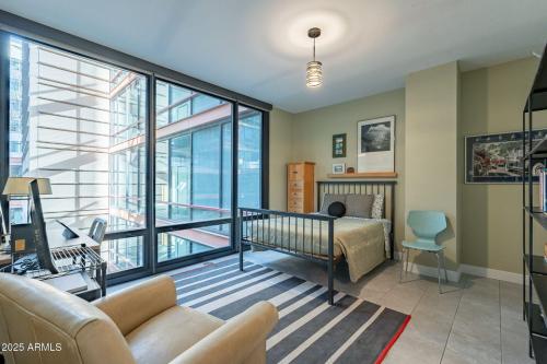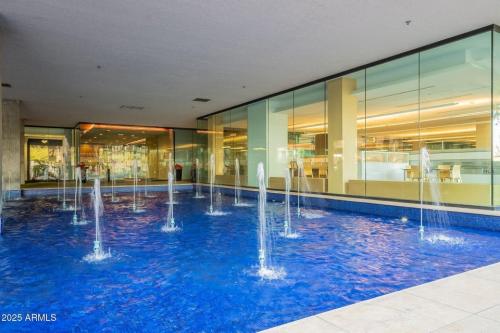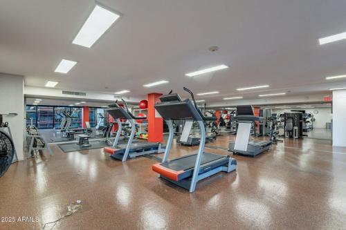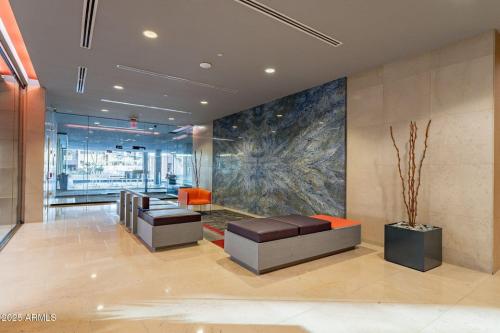 Experience upscale urban living in this stunning 2-bedroom, 1.75-bathroom condo with 2 parking spaces located in the highly sought-after Optima Biltmore Towers. Boasting high 9-ft. ceilings and an open-concept design, this residence is bathed in natural light with floor to ceiling windows, creating a spacious and inviting atmosphere. The modern kitchen is wonderfully equipped for cooking and entertaining and features stainless steel appliances, a Thermador 5-burner gas cooktop, and large single basin sink. This 3rd floor condo with tile flooring throughout has 2 spacious bedrooms and offers courtyard views perfect for enjoying the courtyard water features and is conveniently located on the same floor as the fitness center. Enjoy top notch resort-style amenities, including a rooftop pool and spa (construction estimated to be completed in January), rooftop relaxing space with lounge chairs, tables, and barbecues all with breathtaking 360-degree views of the city skyline and Camelback Mountain. Optima Biltmore also offers an on-site concierge, meeting space, and secured entry. This residence includes two parking spaces and a storage locker in the gated parking garage. Seller is also including the recently purchased washer and dryer. Located just minutes from Biltmore Fashion Park, top-rated restaurants, luxury shopping, golf, hiking trails, and Sky Harbor airport, this is the ultimate blend of urban sophistication and convenience.