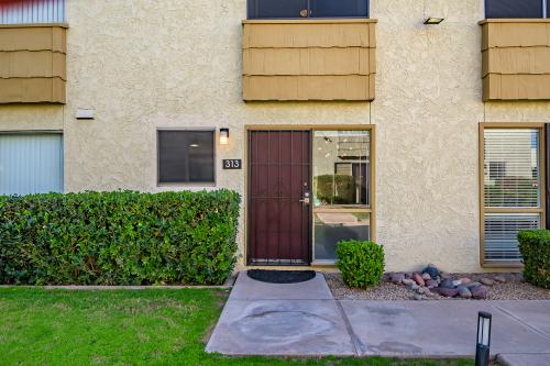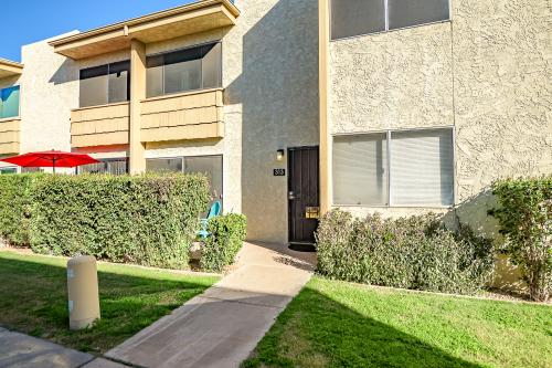 RARE FULL SIZE WASHER DRYER IN UNIT. Beautifully renovated 2 Bedroom 2 FULL Bath townhouse in Camelback House. This unit has been completely remodeled featuring full two bathrooms, tile & carpet flooring, energy efficient windows & sliding glass door, fresh paint, vaulted ceiling in the stairwell, modern chandeliers and LED lighting, NEW AC unit, owned security system, & more. You must see this unit to appreciate all the effort that went into this project. Within walking or biking distance to the world renowned Shops at Scottsdale Fashion Square, multiple Casual & Fine Dining Experiences, Scottsdale Waterfront, Old Town Scottsdale and Camelback Mountain Hiking, Scottsdale Art Walk, Spring Training and so much more. HOA allows short term rentals making this unit a great investment property! Seller offering flooring credit for carpet upstairs.