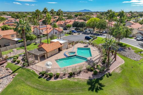 Welcome home to The Islands - Gilbert's most desirable lake community, where every day feels like a vacation! This beautiful 3-bedroom, 2-bath residence boasts a modern farmhouse-inspired kitchen with quartz countertops, stainless appliances, double oven, two-toned cabinets, and an oversized farm sink - ready for your next dinner party or cozy night in. Enjoy a spacious living room with a fireplace, two pantries for all your storage needs, and TWO dining areas - perfect for entertaining or relaxing. Step out back to low-maintenance turf yard, while the HOA keeps your front landscaping immaculate so you can soak in the effortless resort vibes. This home is just steps from the sparkling community pool, tranquil lakeside walking paths, lush parks, and all the amenities that make The Islands so highly sought after - including boating and fishing permits, playgrounds, and year-round social events. Don't miss your chance to live lake-adjacent in a friendly, picturesque neighborhood - schedule your tour and make The Islands your new home!