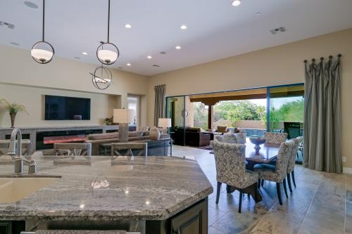 Your Sonoran Desert sanctuary awaits! Turnkey & fully furnished, this modern southwest-style custom home boasts incredible finishes throughout. The Entertainer's Dream kitchen features a large island & ample storage. The spacious 4-bed home, plus a den/office, offers 4.5 baths & an open GREAT ROOM design. With 12' ceilings, the space is light & bright, featuring a popular split-bedroom layout. All bedrooms are ensuite! The resort-style backyard oasis includes a heated pool & firepit. Enjoy the spacious 3-car garage with built-ins & epoxy floors, a paver driveway, and easy desert landscaping. Nestled in a private cul-de-sac, the park-like setting offers mountain & sunset views. Quality appointments throughout & close to hiking, golf, & the dining options of N Scotts, Carefree & Cave Creek!