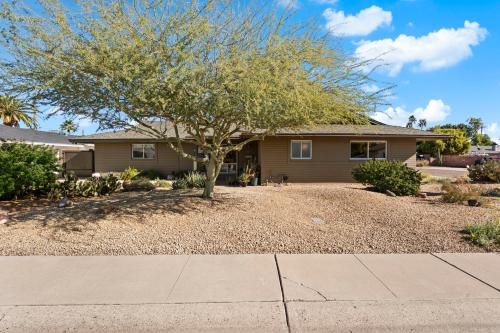 Moments from Chaparral Park and the Greenbelt, this thoughtfully updated 4-bed, 2-bath mid-century home is set in one of Scottsdale's most desirable neighborhoods. Full of character, the interior features polished concrete floors, custom bookshelves, and thoughtfully designed storage throughout. The spacious kitchen offers granite countertops, maple cabinetry, and opens to a large dining area and family room. The garage provides flexible space for parking, a workshop, or hobby room. Driveway parking accommodates four vehicles, including two behind a secure metal gate. Block construction and energy-efficient upgrades add everyday comfort. The mature desert-landscaped backyard is a peaceful retreat with a covered porch, patios, and pool. Ideal for entertaining. Features & Improvements Energy Efficiency, Systems & Big-Ticket Infrastructure " Trane Energy Star heat pump HVAC with transferable 10-year warranty (2023) " Dual Solar/Electric hot water system with solar panel & 80-gallon tank " Landmark premium roofing with 30-year asphalt shingle (2011) " Replacement windows with double-pane glass throughout property " Under-slab main sewer line & lateral replacement (2014) " Main sewer line replaced from house to city connection (2014) Kitchen & Dining " Open-concept kitchen remodel with custom maple cabinetry with drawers, baskets & sliding shelves " Granite countertops with undercounter lighting, stainless sink & breakfast bar over custom bookcases " Bosch Energy Star true convection oven (2022) " Bosch Energy Star induction cooktop (2010) " Whirlpool Energy Star refrigerator/freezer with extended warranty (2024) " Whirlpool Energy Star Quiet II dishwasher (2024) " Skylight, window & shade operated by remote " Custom wall-to-ceiling built-in bookcase Interior Comfort, Layout & Storage " Camelback Mountain view from front sitting room " Double French doors to patio from family room " Master bedroom and primary guest room closets with custom shelving, lighting & mirrored French doors " Master bath upgraded with travertine floors and frameless glass shower " Guest bedroom and office closets with custom shelving and double doors " Entryway and hallway utility closets with custom shelving " Laundry room cabinets and custom shelving Outdoor Living " House and block walls professionally painted (2023) " Pool upgraded with 3M quartz plaster, electrical, plumbing & equipment " Master bath upgraded with travertine floors and frameless glass shower " Pool Energy Star pump upgrade (2025) " City of Scottsdale code-compliant removable pool barrier fence " Desert landscaping on drip irrigation system " Three cobblestones patio areas Security, Connectivity & Convenience " Lockable metal gates for secure parking " Matching lockable metal gate to alley " Monitored security alarm system " Fiber optic internet