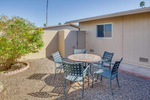 Seasonal Occupant, INCLUDING FURNISHINGS Available with accepted offer. Garden style home with NEW 2024 HVAC System! Tankless Water Heater - 2021. Total Kitchen Remodel, Quartz Countertop and Updated Bathroom Vanity/Sink in 2021. Floorplan Modified - Bonus Room added. New Flooring - 2021. Private North Facing Courtyard. Prime End Unit. New Front Door. Oversize Garage (353 sq ft). Indoor Stackable Washer/Dryer. This inviting 2-bedroom/2-bathroom Home. Just bring your toothbrush, because this home is ready for move in! Additional Features are Updated Window Coverings, Updated Fans, Built-in Garage Cabinets, Security Doors, Farmhouse Sink. Both Bedrooms have Walk-in Closets, and the Main Bedroom has added a Wall-to-Wall Mirrored Closet. Skylights for added Natural Light. Must see home that is READY TO GO! Seller can vacate property promptly.