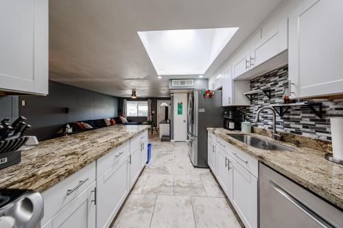 Updated floors, wiring, ac, water heater, kitchen, baths, roof and more. This 3 bed, 2 bath move-in ready, is solid block construction in 85032 Zip Code near Roadrunner Park, Whole Foods and PV Development. The updated kitchen has white shaker cabinets with granite countertop, stainless steel appliances and SKYLIGHT for more natural light are great additions. The Master en suite bath has a new vanity and walk-in glass while the yard has a built-in fire pit, hot tub spa and expanded patio with extra room TOYS!
