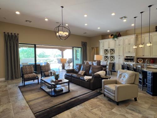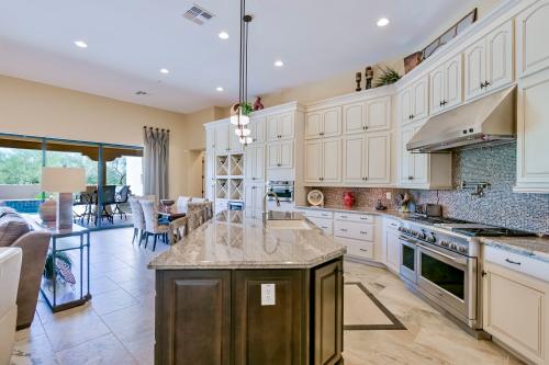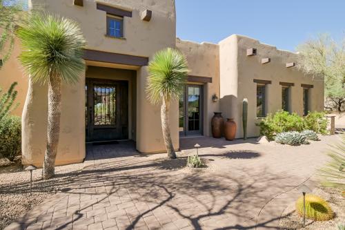 Your Sonoran Desert sanctuary awaits! Turnkey & fully furnished, this modern southwest-style custom home boasts incredible finishes throughout. The Entertainer's Dream kitchen features a large island & ample storage. The spacious 4-bed home, plus a den/office, offers 4.5 baths & an open GREAT ROOM design. With 12' ceilings, the space is light & bright, featuring a popular split-bedroom layout. All bedrooms are ensuite! The resort-style backyard oasis includes a heated pool & firepit. Enjoy the spacious 3-car garage with built-ins & epoxy floors, a paver driveway, and easy desert landscaping. Nestled in a private cul-de-sac, the park-like setting offers mountain & sunset views. Quality appointments throughout & close to hiking, golf, & the dining options of N Scotts, Carefree & Cave Creek!