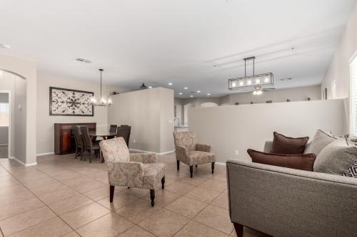 This beautiful single level, split floorplan, 3 bed + den, 2 bath residence in Skyline Ranch is looking for its new owners! Freshly painted inside and out, north/south exposure, great curb appeal, low maintenance landscape, and a 2 car garage are just the beginning. Inside you will find sizeable dining & living areas with tile in all the right places. The eat-in kitchen is open to the family room & comes equipped w/ample cabinetry, a pantry, stainless steel appliances, granite countertops, an island and butler's pantry. The primary suite showcases a full ensuite w/dual sinks , tile shower, garden tub and a walk-in closet. Also included is a nice sized backyard w/a covered patio. The community offers sand volleyball, basketball court and a playground area. This home is a true gem!
