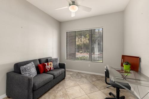 Move-in ready, lock-and-leave living in this gated 'hidden island' community. Enjoy immaculate grounds with waterfalls, koi ponds, indoor lobbies, elevators, clubhouse, fitness center, and private garden areas. The split floor plan offers comfortable living and easy entertaining, plus direct building access to a 2-car tandem garage with plenty of storage. Minutes from groceries, restaurants, schools, and Phoenix Sky Harbor Airport. Low-maintenance luxury in a prime central location.