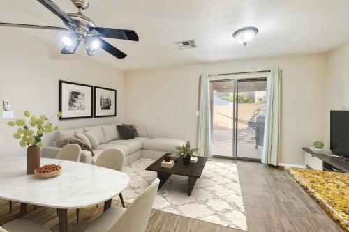 Close to the 51 & the 101 Freeways, restaurants, schools, shopping, Post Office & so much more. Walking distance to Elementary school & Palomino park just east of the community. This spacious 3 bedroom, 2.5 bath home includes a well maintained Kitchen w/granite countertops, stainless steel appliances including a newer refrigerator & dishwasher, Breakfast Bar, open to Great Room updated flooring throughout the downstairs area, Enjoy private low maintenance backyard with covered patio, Water feature(as-is) Plus shade awnings & lights that remain. Upstairs your spacious Owners Suite includes a walk in closet, Full bath with tub/shower, down the hall are bedrooms 2 & 3, hall bath & laundry, Washer & Dryer remain too! Also a 2 car garage too