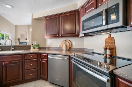 Amazing opportunity to own this highly upgraded, charming split floorplan 3-bedroom, 2-bath home in the sought-after golf course community of Red Mountain Ranch. Situated on a cul-de-sac lot, this 1,526 sq. ft. move-in ready home has been thoughtfully remodeled throughout. The owners completed a full renovation when they purchased the home, including a new roof, brand-new kitchen and bathroom cabinetry (not just refinished), granite countertops, updated carpet and tile flooring, blinds, fixtures, and faucets, along with appliances replaced in 2021 and new AC Compressor in 2024, making this truly a turnkey property. As you enter, the foyer opens to a spacious family room with soaring vaulted ceilings, a cozy wood-burning fireplace, and sliding glass doors that fill the space with natural light and create an open, inviting feel. The chef's kitchen features stainless steel appliances, granite countertops, a sit-up breakfast bar, and rich cabinetry with ample storage and workspace, all flowing seamlessly into the dining area with direct access to the patio--perfect for indoor/outdoor living. The primary suite offers vaulted ceilings and sliding glass doors to the backyard, creating a bright and airy retreat. The ensuite bathroom includes dual sinks, a soaking tub, separate shower, and a walk-in closet with cedar planking. Bedroom 2 offers flexibility as a home office or can be opened to create a formal dining space, while Bedroom 3 is ideal for guests or family. Step outside to the large, private backyard, a blank canvas ready for your vision with plenty of room for a pool, putting green, or your own custom outdoor oasis. Red Mountain Ranch offers an array of amenities, including an 18-hole Championship Golf Course, Restaurant, Tennis Courts and a new Gated Park with Pickleball Courts, Pool/Spa, and Fitness Center with an optional membership fee. Conveniently located just minutes from the Tonto National Forrest with some of the best Hiking and Biking Trails and just 15 minutes to Saguaro Lake and the Salt River, 20 minutes to Sky Harbor and Williams Gateway Airports, Scottsdale, and close to Shops, Restaurants.